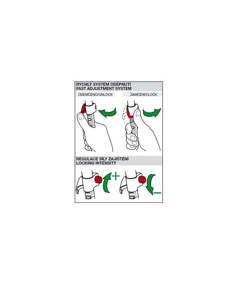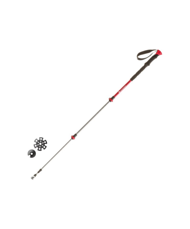 3 segmenti din aluminiu 7075 cu sectiune triunghiulara pentru rezistenta mai buna la rupere • ø18-16-13 mm • lungime ajustabila de la 62 la 135 cm • maner cu forma anatomica cu protectie anti-alunecare, varf din tungsten • ajustare rapida tip Powerlock (metalic).