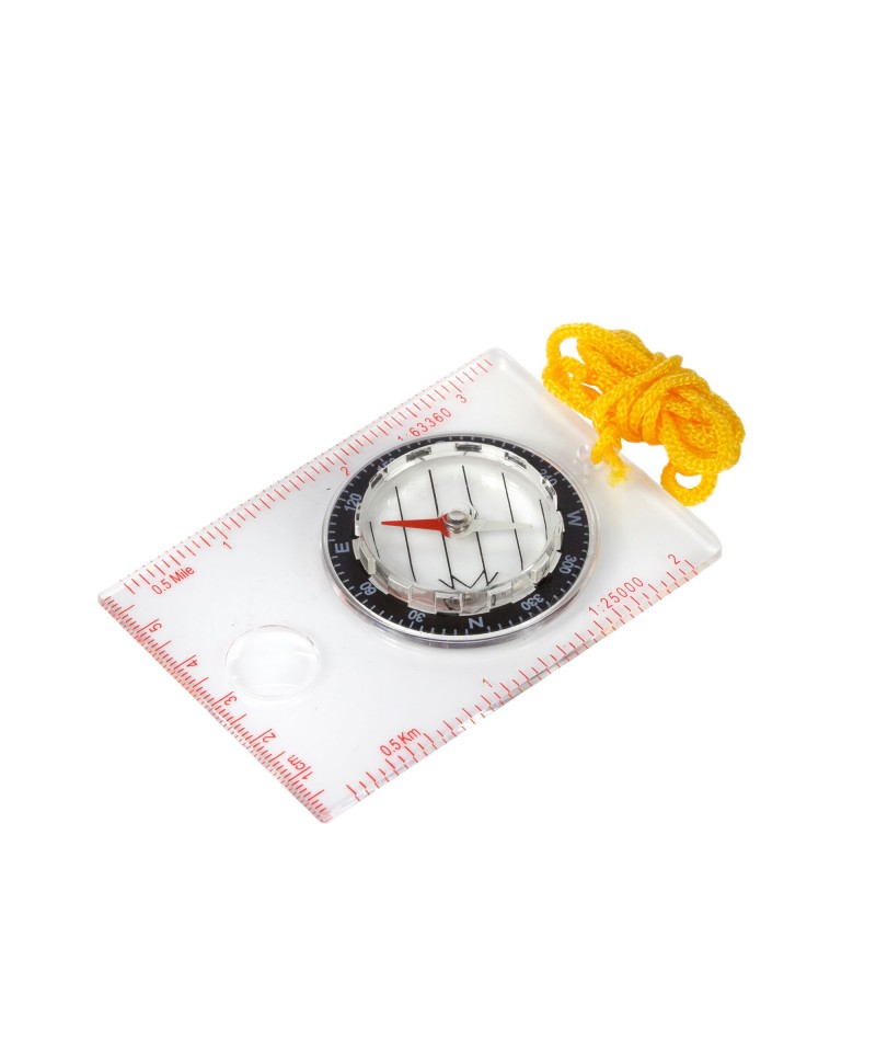 Utilizare: Uniti punctul de plecare si punctul de sosire cu rigla busolei îndreptand săgeata roșie de pe bază, în direcția în care doriți să mergeți. După ce busola arată N rotiți coroana busolei în așa fel încât săgeata neagră de sub ac să se suprapuna perfect pe sageata rosie. Porniți în direcția dorită având grijă ca cele două săgeți să fie suprapuse tot timpul. Pentru întoarcere lăsați coroana cu săgeata neagră la locul ei și faceți ca S să se suprapună cu vârful săgeții.