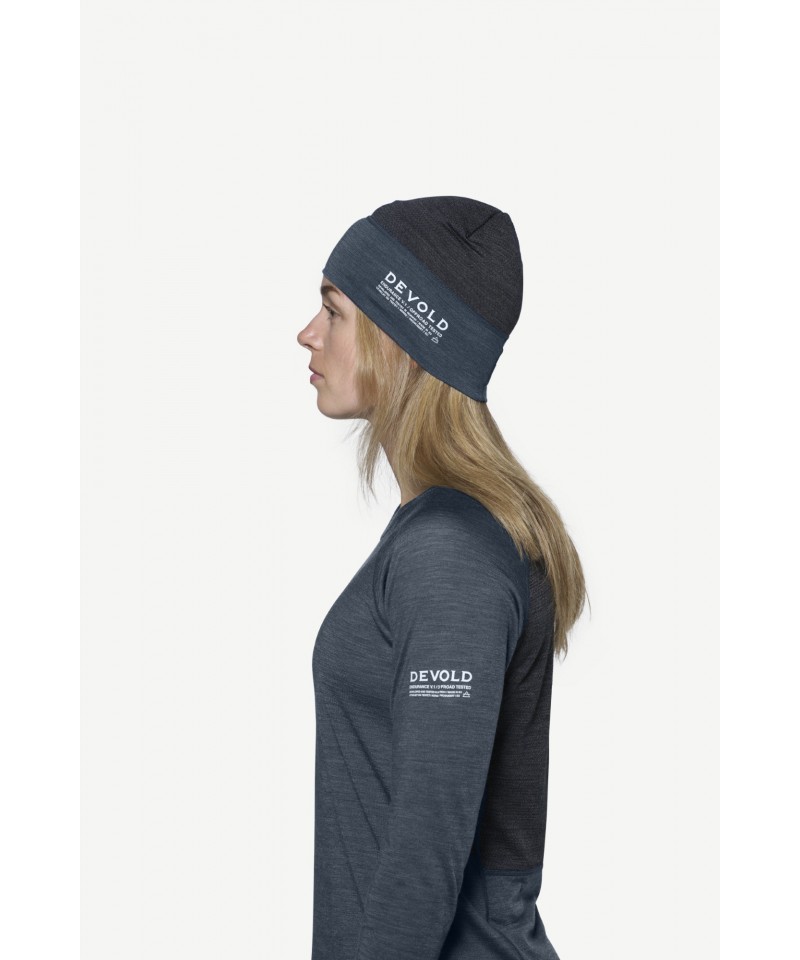 Caciula ușoară Endurance Merino Light de la Devold are cusături plate, confortabile și o parte superioară din plasă respirabilă.