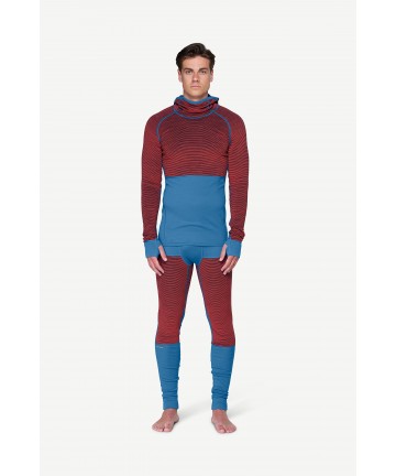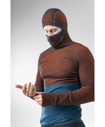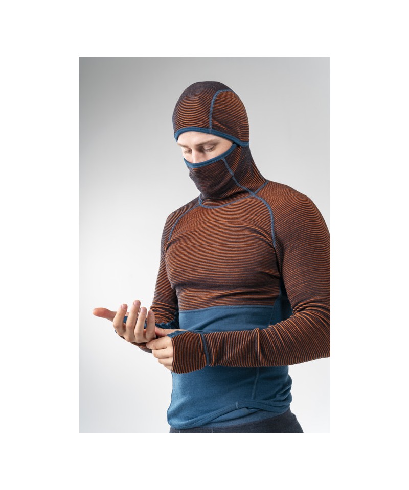 Suprafața plană oferă un transport eficient al umiditatii și o respirabilitate ridicată atunci când este purtată lângă piele. Dacă este necesară mai multă izolație, tricoul poate fi inversat, în acest caz construcția din țesătură 3D cu canale de aer va genera izolație suplimentară. Pentru a îmbunătăți și mai mult capacitatea de a regla temperatura corpului, am plasat strategic Wool Mesh pe panoul din spate si sub brațe.
