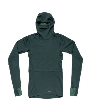 Suprafața plană oferă un transport eficient al umiditatii și o respirabilitate ridicată atunci când este purtată lângă piele. Dacă este necesară mai multă izolație, tricoul poate fi inversat, în acest caz construcția din țesătură 3D cu canale de aer va genera izolație suplimentară. Pentru a îmbunătăți și mai mult capacitatea de a regla temperatura corpului, am plasat strategic Wool Mesh pe panoul din spate si sub brațe.