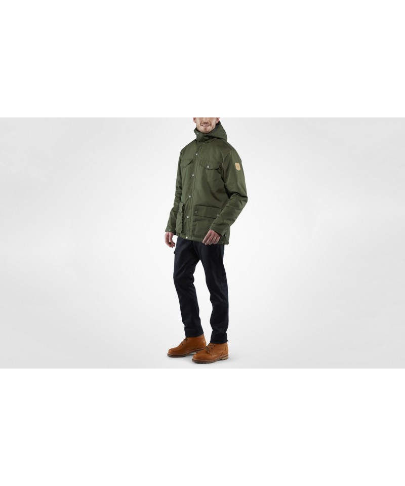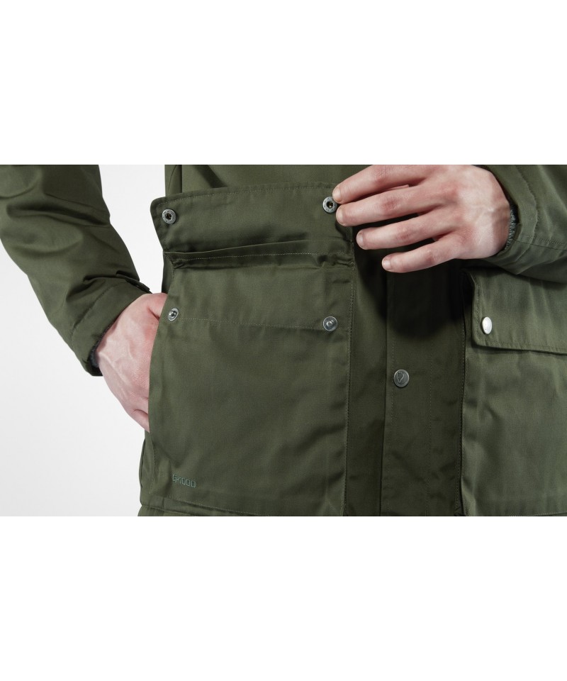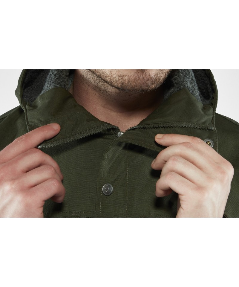 Proprietățile sale rezistente la apă pot fi îmbunătățite cu Greenland Wax, care crește și mai mult durabilitatea jachetei deja de lungă durată. Echipata cu gluga fixa ajustabila si un fermoar cu dublu cursor si cu capse.
