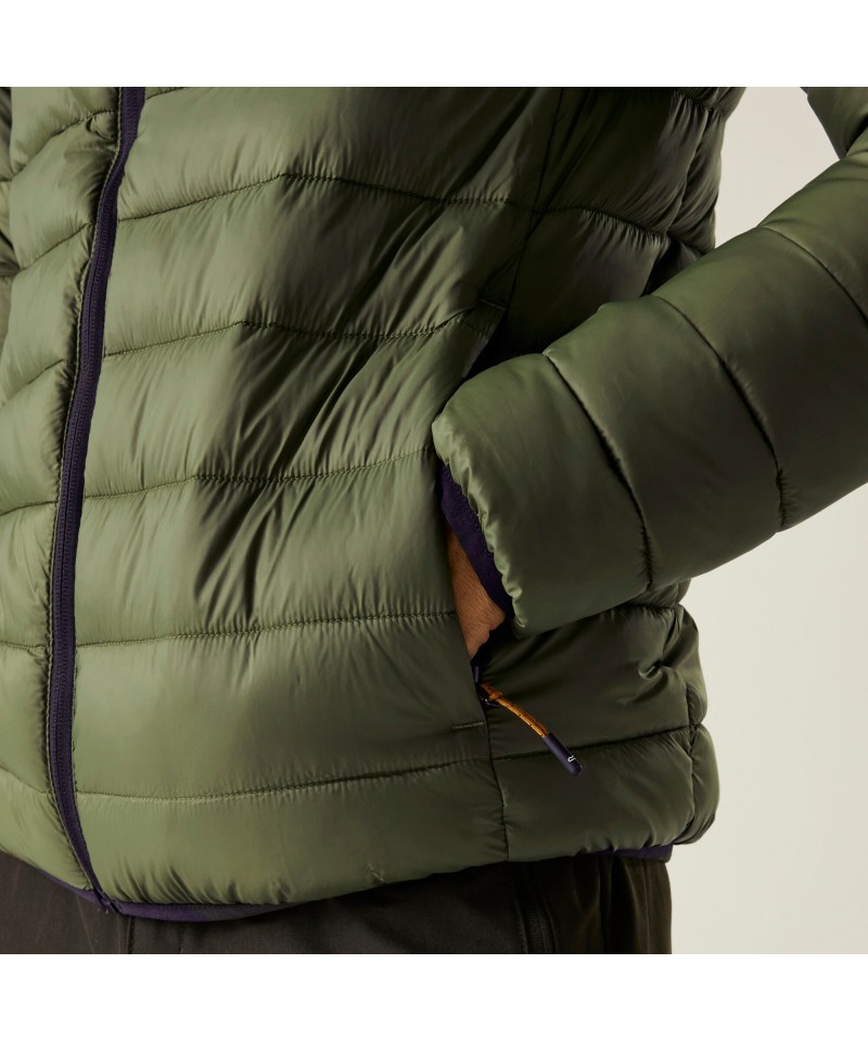 Geaca umpluta cu puf sintetic, cu finisaj hidrofug care va ține la distanță ploile ușoare. Tiv si mansete cu banda elastica pentru a tine frigul departe. Se poate purta ca atare intre sezoane sau ca strat termic intermediar in sezonul rece.