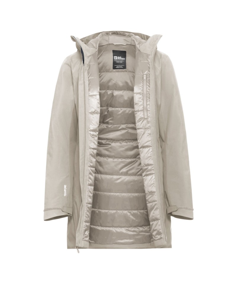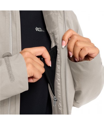 Jacheta este umplută cu o izolație din fibră sintetică caldă și rezistentă la umiditate, realizată din poliester reciclat. Există loc în cele trei buzunare pentru obiecte mici.