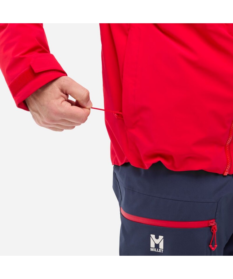 Cu o membrana impermeabilă și respirabilă de 20K/20K, jacheta de schi MILLET GRANDS MONTETS PRO are cusături impermeabile sigilate și o fustă de zăpadă cu șnur elastic antiderapant și un tiv extensibil care se mișcă odată cu tine atunci când ridici brațele.