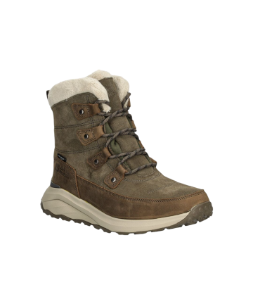 Partea superioară din piele elegantă are căptușeală din shearling și oferă o protecție completă impermeabilă și respirabilă datorita căptușelii TEXAPORE CORE, iar talpa exterioară de cauciuc cu aderentă este concepută pentru a avea încredere pe suprafețele înzăpezite și alunecoase.