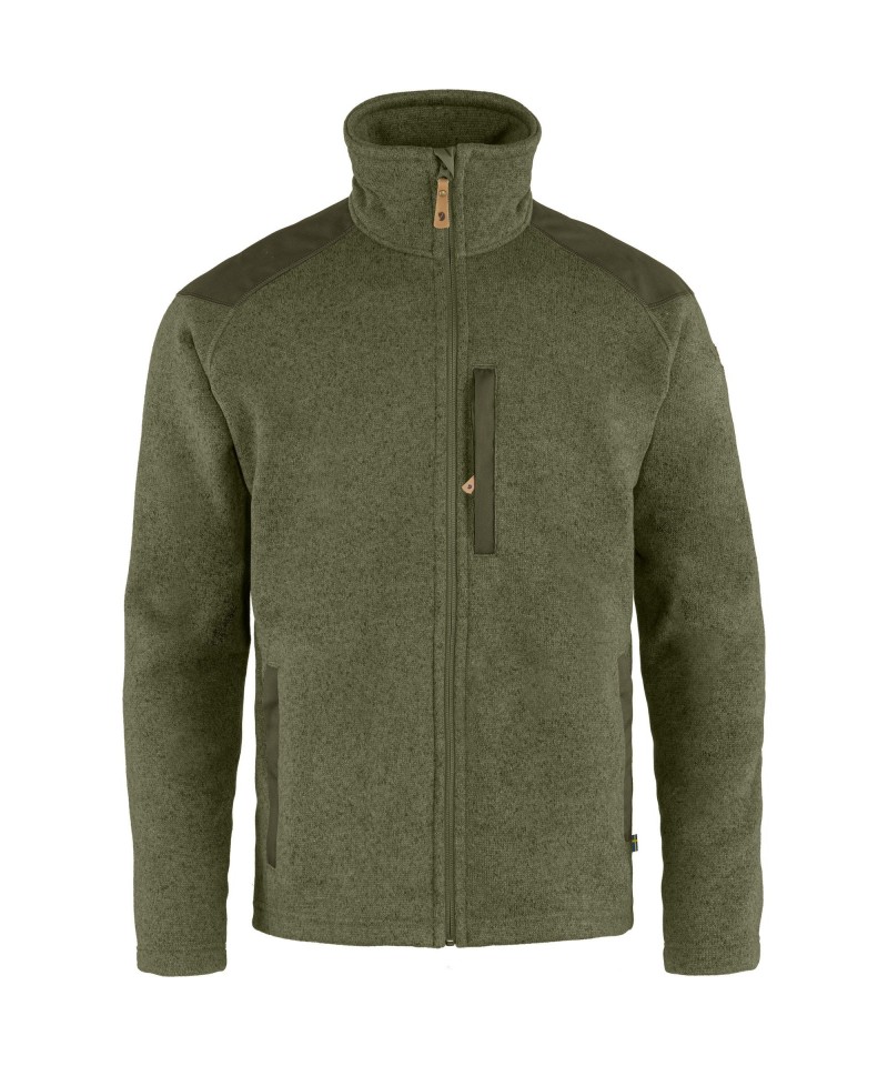 Jacheta din polar cu aspect clasic de pulover tricotat, calduroasa in zilele reci. Intarituri pe umeri din material G1000-original, 2 buzunare laterale, 1 buzunar la piept