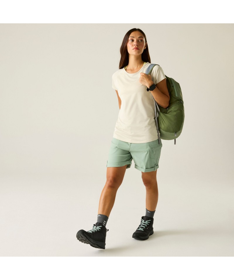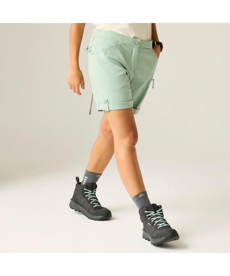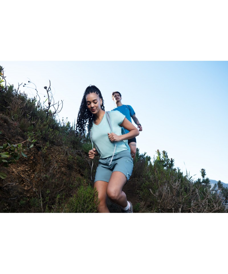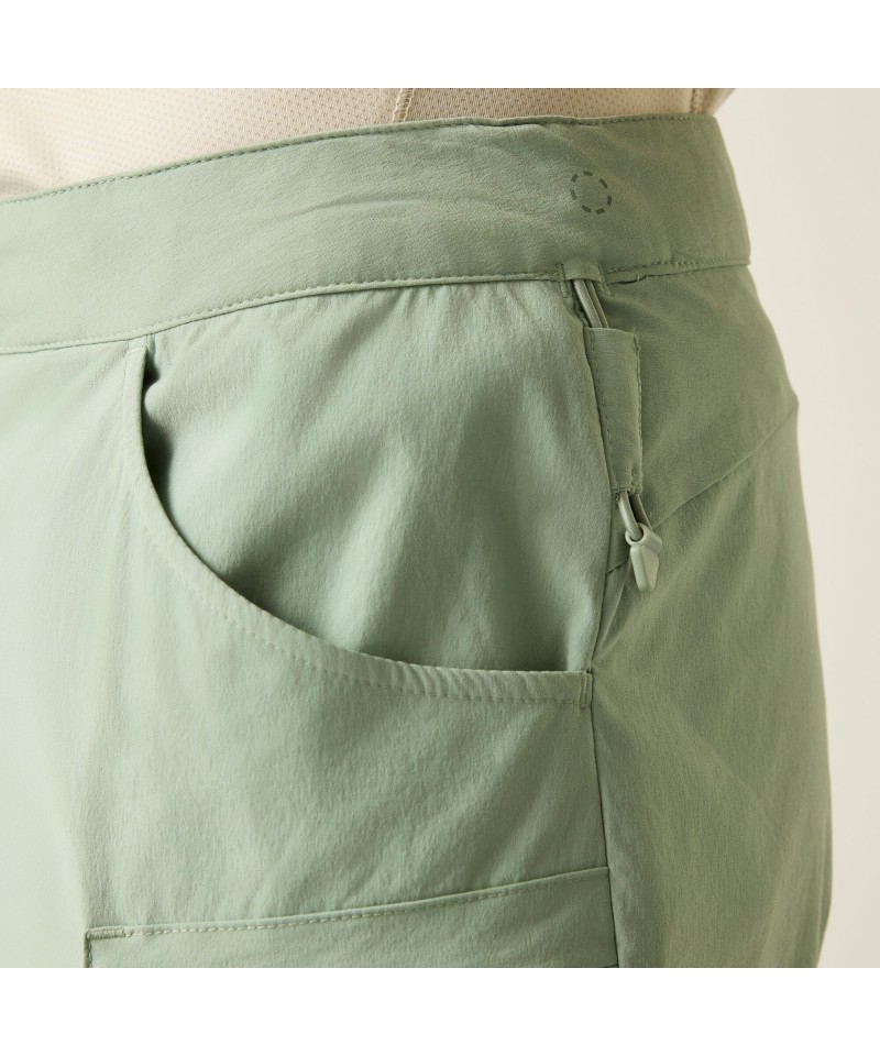Pantaloni scurți fabricați din material stretch din nailon/elastan reciclat, cu un finisaj hidrofug, oferă o combinație perfectă de confort și versatilitate.