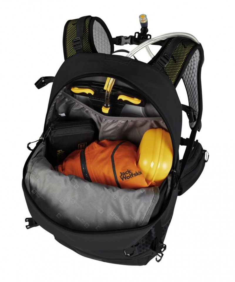 MOAB JAM PRO 30.5 are de asemenea, un compartiment separat pentru o pungă de apă, în compartimentul principal. Suportul pentru cască este amplasat într-un compartiment separat în față. Ca o caracteristică suplimentară de siguranță, rucsacul este echipat cu detalii retroreflectorizante de înaltă vizibilitate, pe corp și pe bretele de umăr.