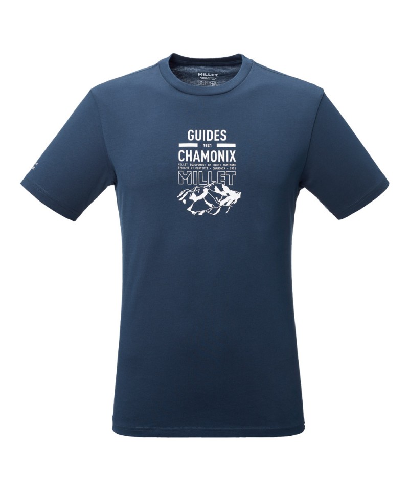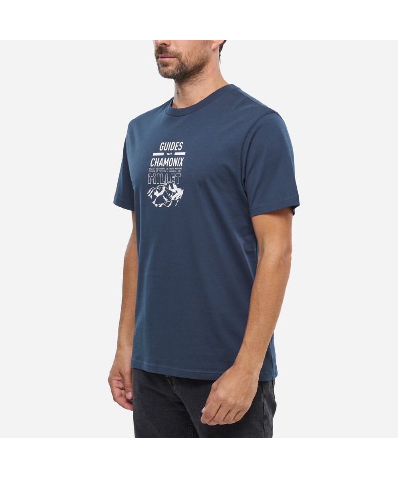 O grafică elegantă pe piept ilustrează parteneriatul în munți dintre Compagnie des Guides de Chamonix și Millet.