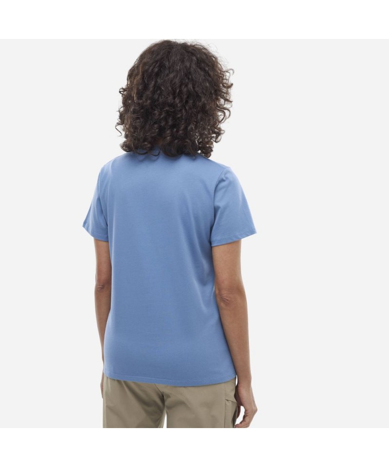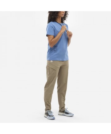 Acest tricou de alpinism din bumbac organic 100% poate fi purtat la catarat sau in oras. Croiala feminină cu un model discret și estetic în dreapta jos.